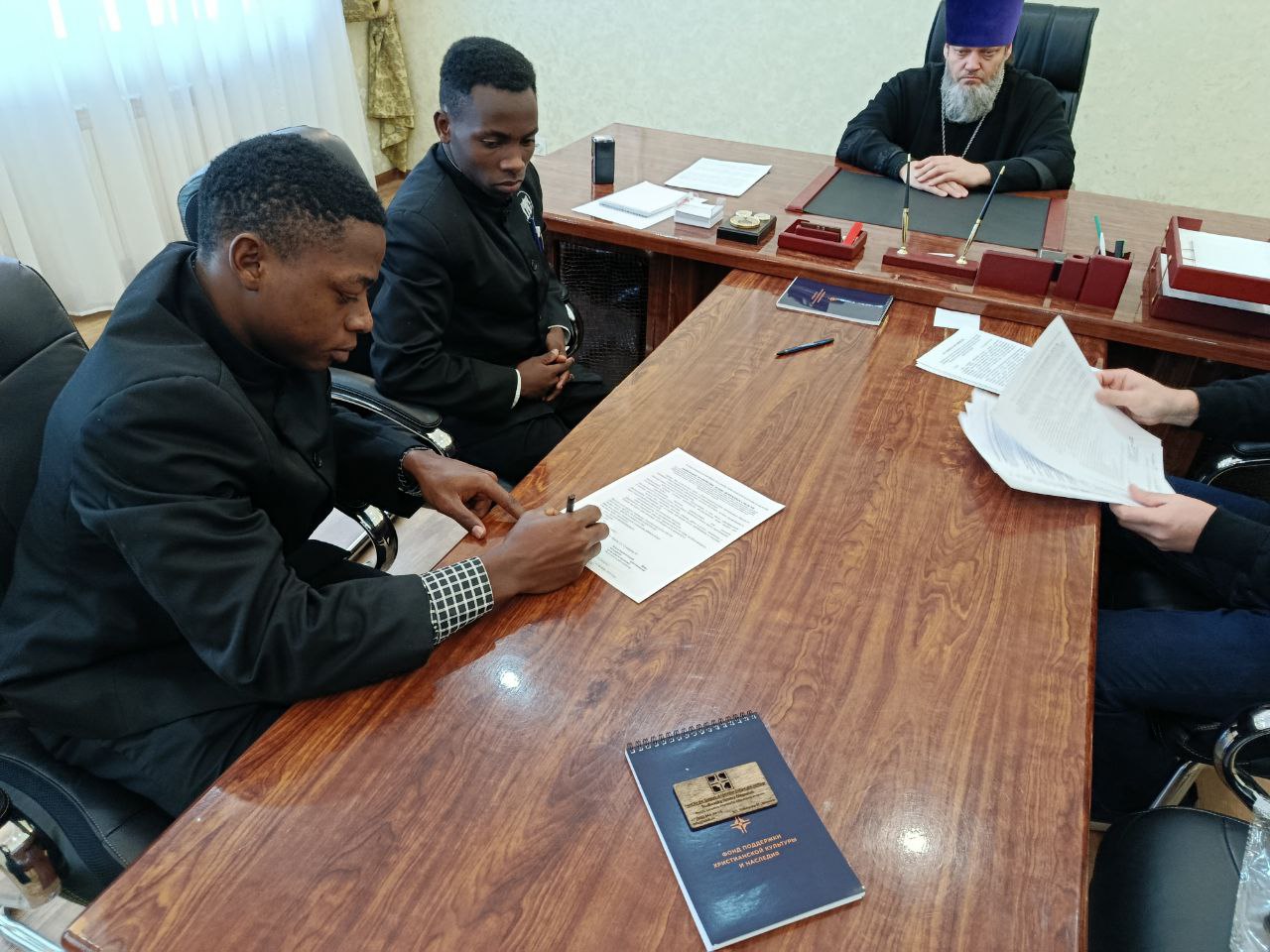 В рамках встречи, в связи с обучением в Пензенской семинарии иностранных студентов из Кении и Камеруна, было подписано соглашение о сотрудничестве между духовной школой и фондом.