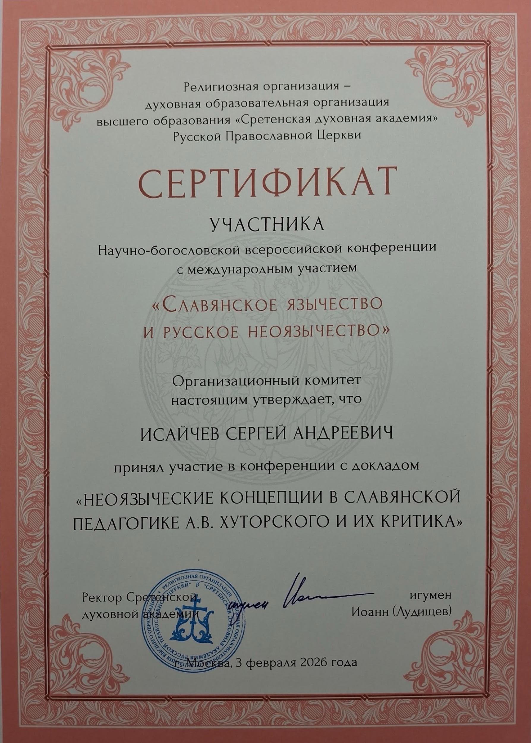 3 февраля 2026 года сотрудник Пензенской духовной семинарии, кандидат богословия диакон Сергей Исайчев принял участие в V Всероссийской конференции с международным участием «Славянское язычество и русское неоязычество»