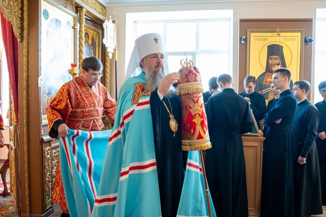 В этот светлый день вся духовная школа молитвенно разделяет с Вами радость торжества. Взирая на житие священномученика Серафима, мы видим в Вашем архипастырском служении продолжение тех же христианских добродетелей: твердости в вере, ревности о славе Божией и безграничной любви к пастве.