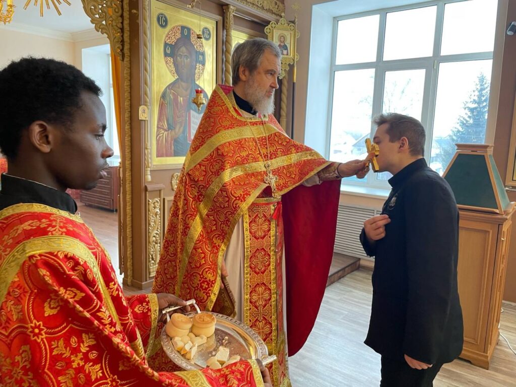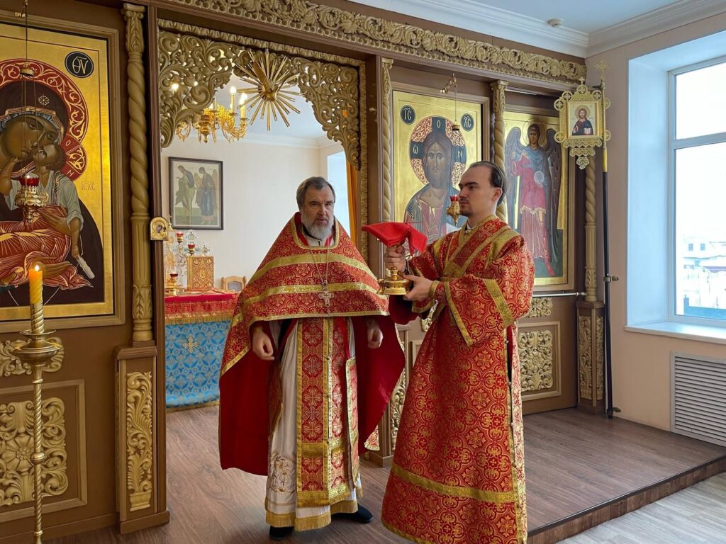Божественную Литургию в храме святителя Иннокентия Иркутского совершил проректор по научной работе протоиерей Вадим Ершов в сослужении диакона Олега Шештанова.