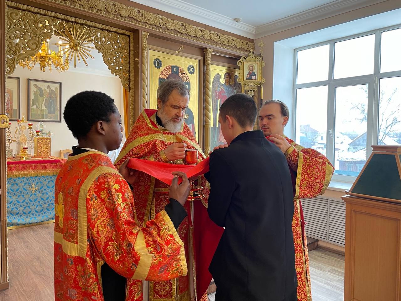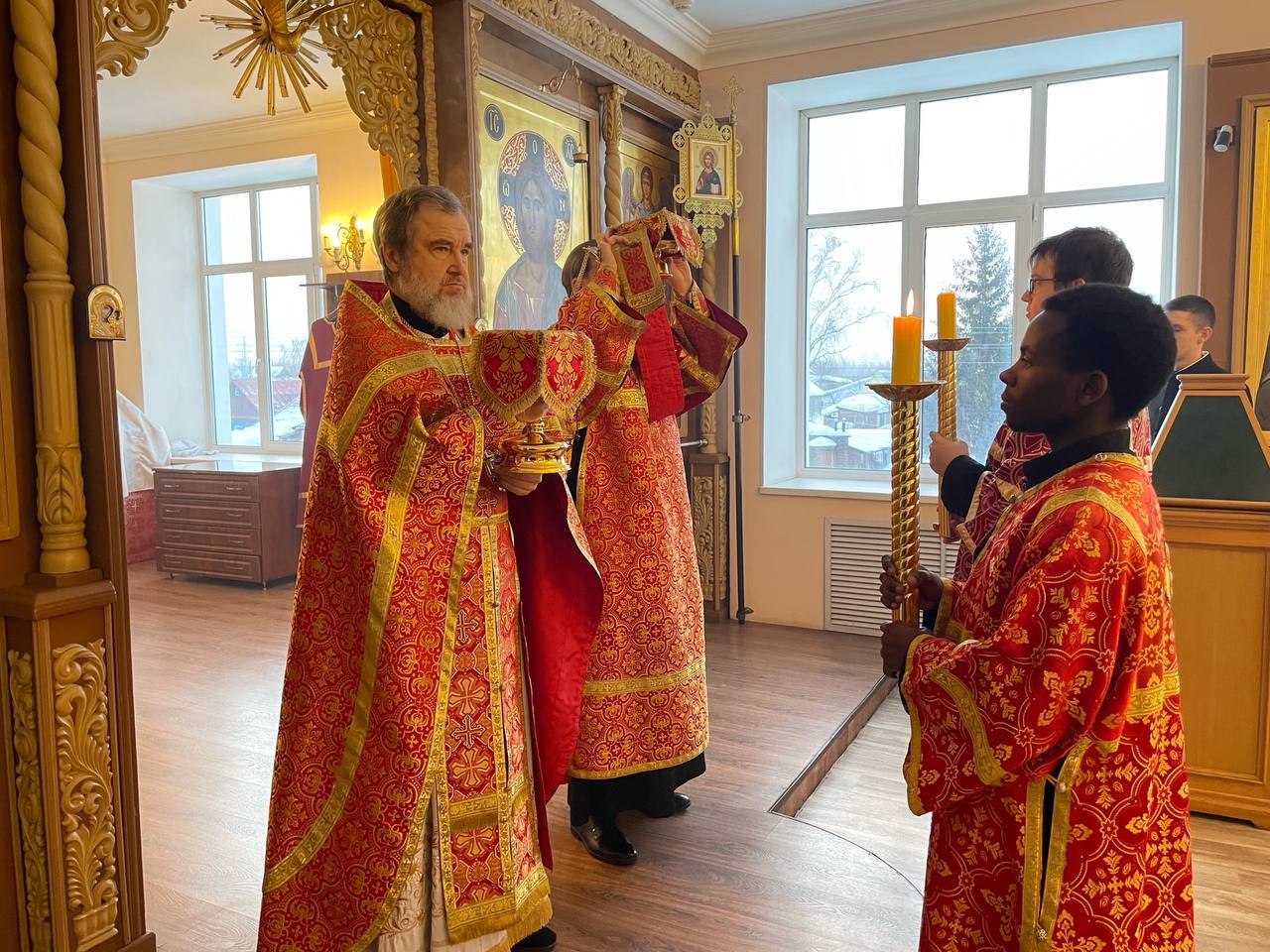 Божественную Литургию в храме святителя Иннокентия Иркутского совершил проректор по научной работе протоиерей Вадим Ершов в сослужении диакона Олега Шештанова.